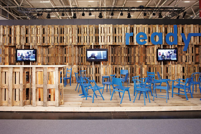Auf der Weltleitmesse der Baubranche – der BAU 2013 in München – stellt sich der Messestand des Forschungsprojekts „ready – vorbereitet für altengerechtes Wohnen“ des Instituts Wohnen und Entwerfen der Universität Stuttgart genau diesem Wettbewerb, mit der zusätzlichen Herausforderung, kein konkretes Produkt, sondern ein abstraktes Forschungsthema zu präsentieren.