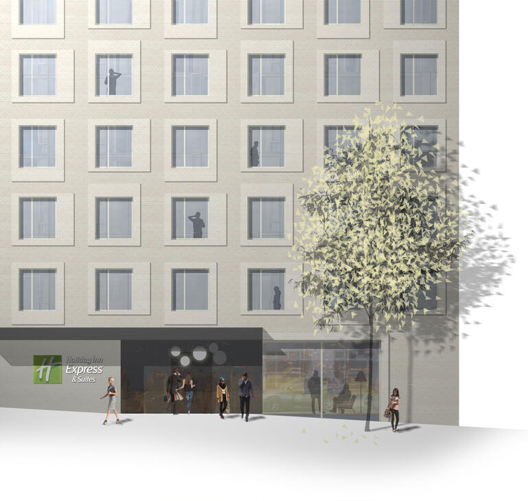 Entwicklung eines Hotelparks mit Studentenapartments und einer Kindertagesstätte an der Wolframstraße in Stuttgart – In unmittelbarer Nähe zum S21 Areal wird auf dem zentralen Eckgrundstück mit starker Topografie ein Gebäudekomplex für zwei Hotelketten im Drei-Sterne-Segment sowie eine Kindertagesstätte und ein Studentenapartmenthaus entwickelt. Um der besonderen städtebaulichen Situation Rechnung zu tragen, soll eine architektonisch anspruchsvolle Lösung mit verbindendem Charakter entstehen. Der Entwurf reagiert mit einer angemessenen Dichte und Struktur.