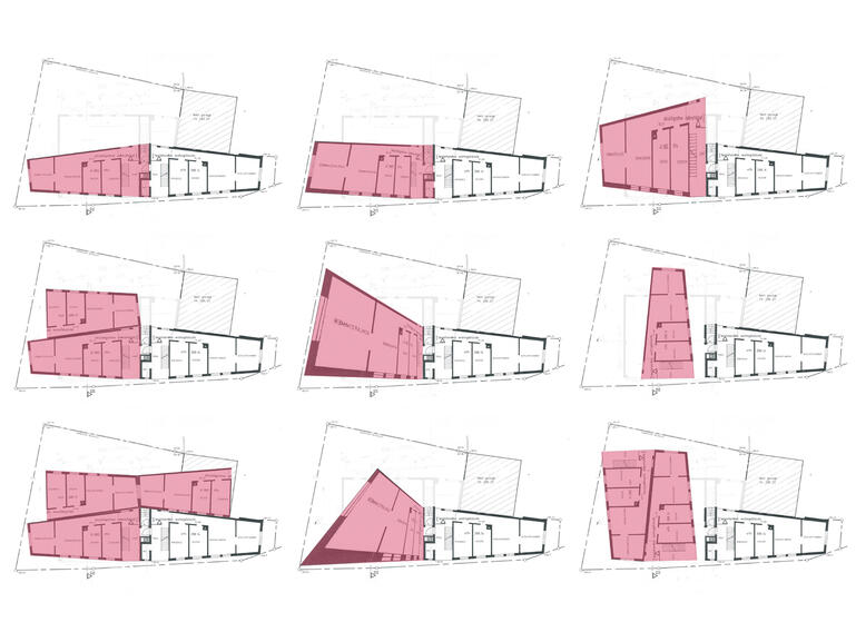 Wohnhaus im Dorfkern – In der kleinen Gemeinde Kernen im Remstal soll für eine junge Familie neben dem elterlichen Haus ein eigenes Wohnhaus entstehen. Auf dem äußerst knapp geschnittenen Grundstück im Ortskern ersetzt der Neubau eine Scheune, die bisher direkt an das alte Wohngebäude angebaut war. Entsprechend schließt das neue Haus wieder passgenau an den Bestand an. Die Grundform entsteht durch Verdoppeln und Spiegeln des bestehenden Gebäudes. Das einfache Volumen mit Satteldach wird durch gezieltes Dehnen und Verzerren an die Anforderungen der Bauherrn angepasst.